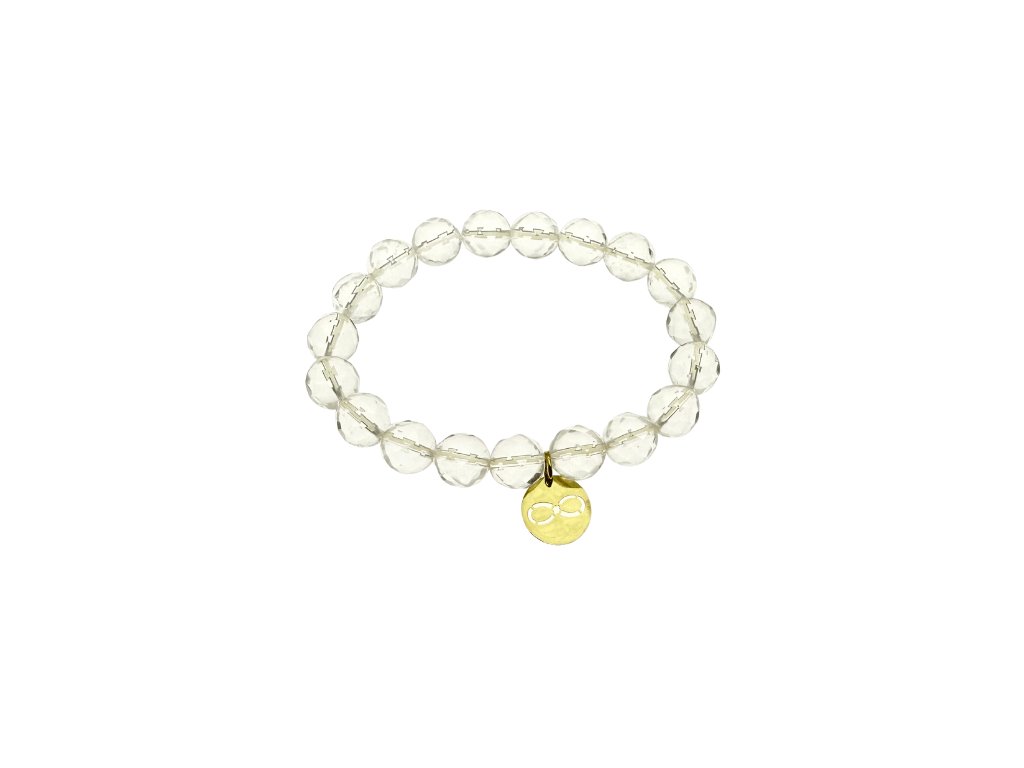 Krištáľový náramok so zlatým symbolom nekonečna – čistota, energia a harmónia