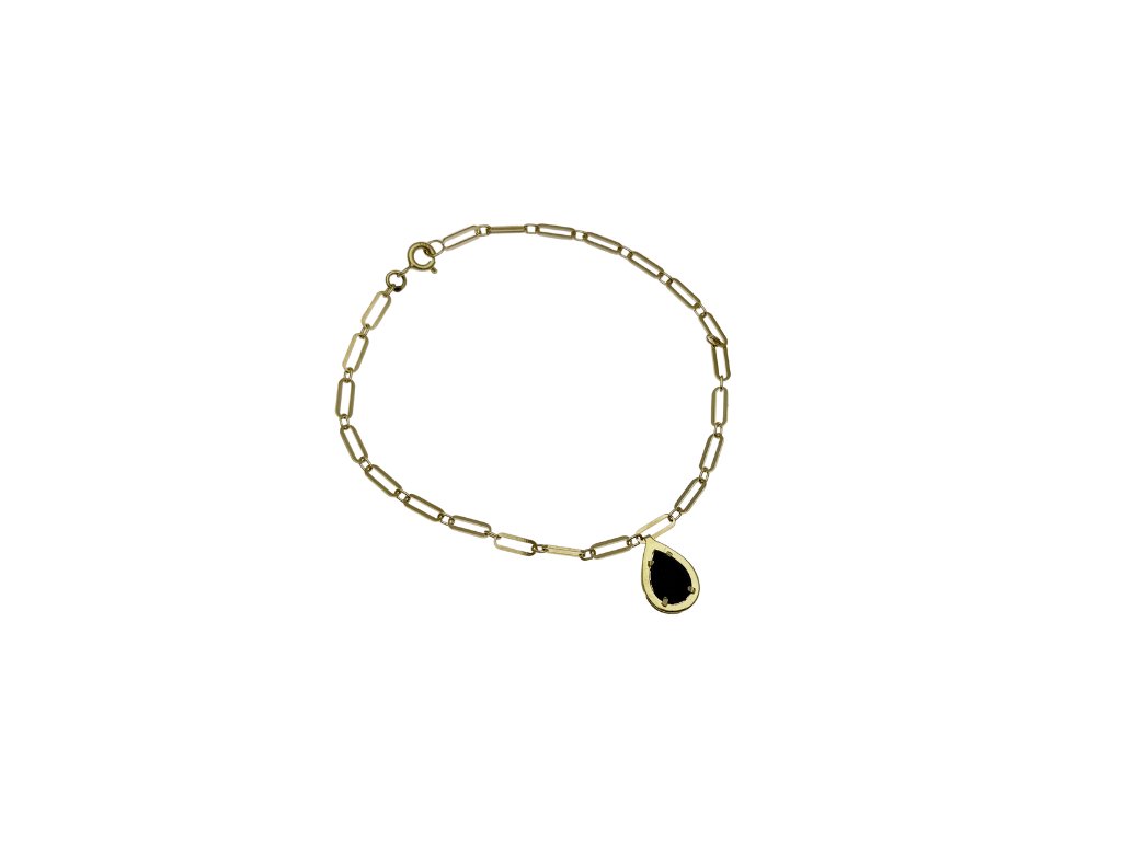 Objav krásu v elegancii. Tento luxusný dámsky náramok z 14-karátového žltého zlata zdobí prírodný kameň ónyx, známy ako symbol sily, ochrany a sebavedomia. Spojenie lesku zlata a hlbokej čiernej vytvára nadčasový šperk, ktorý podčiarkne tvoj osobitý štýl.